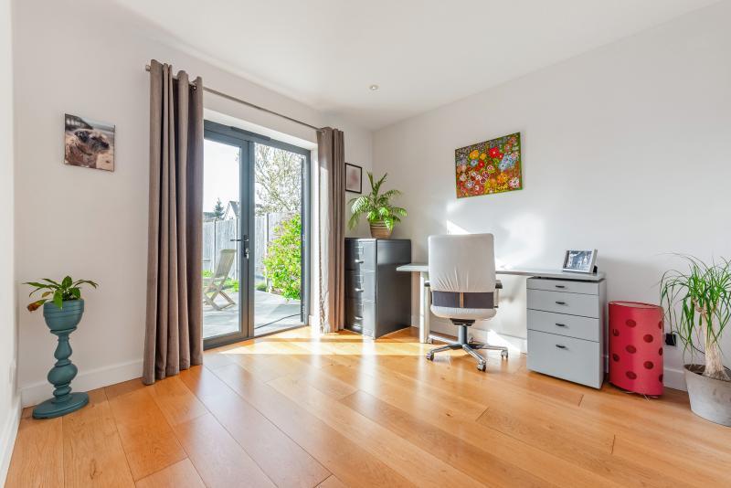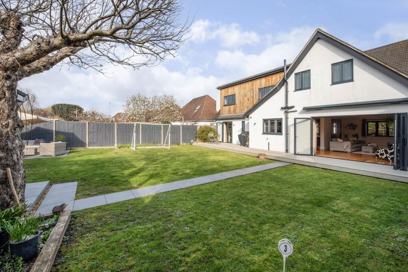 This exceptional home has been thoughtfully extended and modernised, offering an excellent balance of open-plan living and versatile accommodation. The welcoming entrance hall leads into an impressive open-plan kitchen / dining / living space, beautifully designed with a bright triple-aspect layout. A feature bay window to the front, while a corner log burner creates a striking focal point. Bi-fold doors open onto the rear terrace, creating an ideal space for entertaining. A remote-controlled, wind-sensing sun awning adds both comfort and practicality. The contemporary kitchen is fitted with a range of integrated appliances, complemented by ample work surfaces. A separate utility room and ground floor cloakroom add additional convenience. Further ground floor space includes a versatile front reception room, suitable for use as an additional bedroom if required, along with a separate study to the rear with direct access to the garden. To the first floor, the principal bedroom benefits from a stylish en-suite shower room and fitted wardrobes. Bedroom two is particularly spacious (approx. 20ft), while bedroom three features a vaulted ceiling, adding additional character. A contemporary family bathroom completes the first floor.