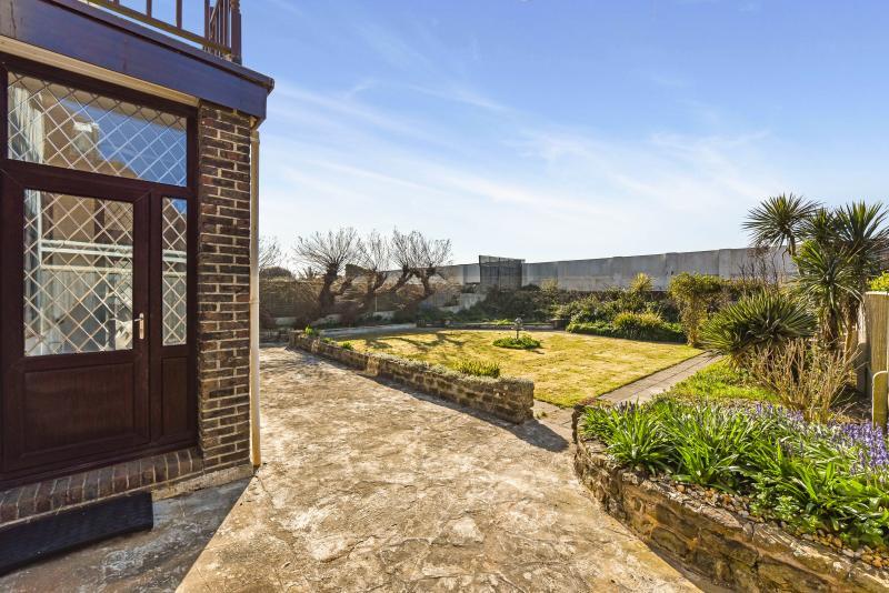 At the rear of the property is a good size south facing garden incorporating a terrace adjacent to the house; a lawn; steps up to a raised terraced area, ideal for outdoor dining; a shower room to the rear of the garage and a set of wooden gates leading directly onto the promenade. At the front of the property is a driveway with parking for several vehicles. Whilst the property requires modernisation throughout, we highly recommend a viewing to appreciate the space and opportunity this characterful, beach frontage property has to offer.