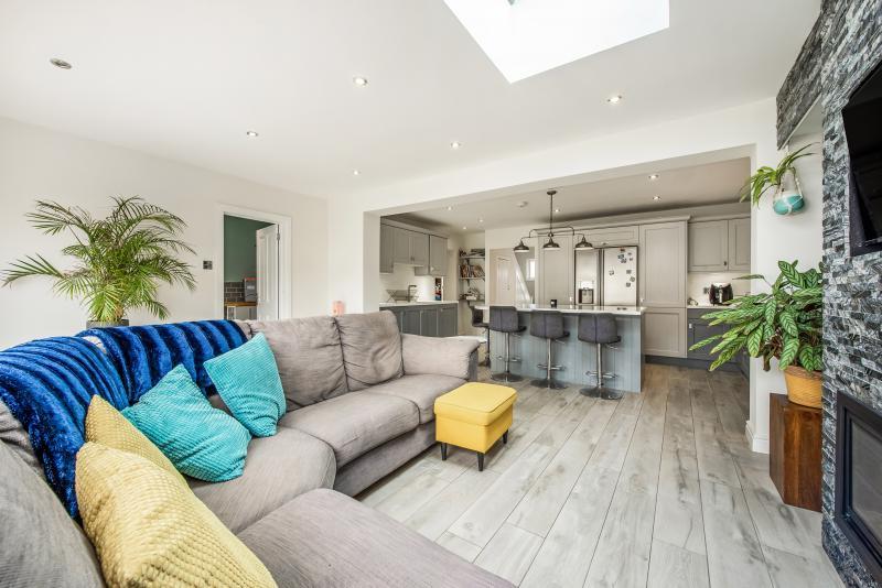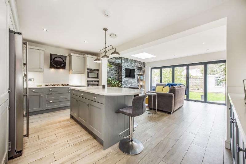 Four-bedroom, extended, chalet style home with large open plan kitchen / breakfast / family room in quiet, cul-de-sac location