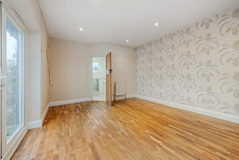 The outer door opens into a large, glazed entrance porch overlooking the pretty front gardens and a large double storage cupboard. The original front door opens to a good size entrance hall which opens to the sitting / dining room, also with large bay window overlooking the front gardens and has a fireplace with log burning stove. The hallway, sitting room and bedrooms all have wooden floors. The kitchen breakfast room is to the rear of the bungalow and has a range of fitted units and integrated appliances, space for dining and a window and door to the rear. The master bedroom has fitted storage, an ensuite shower room with W.C. and double doors out to the rear terrace. Bedroom 2, also a double, has a window to the side and double doors to the front and could be used as a dining room or second reception room. There is also a third smaller double bedroom and a family bathroom.