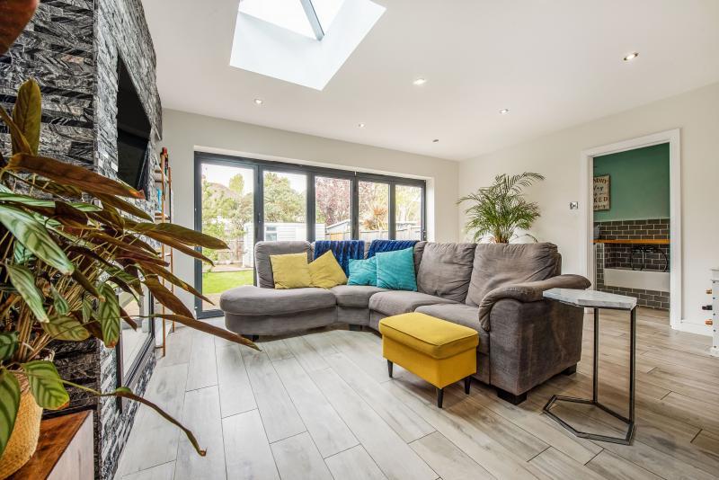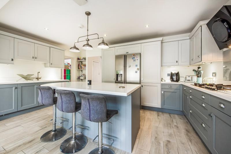 Four-bedroom, extended, chalet style home with large open plan kitchen / breakfast / family room in quiet, cul-de-sac location